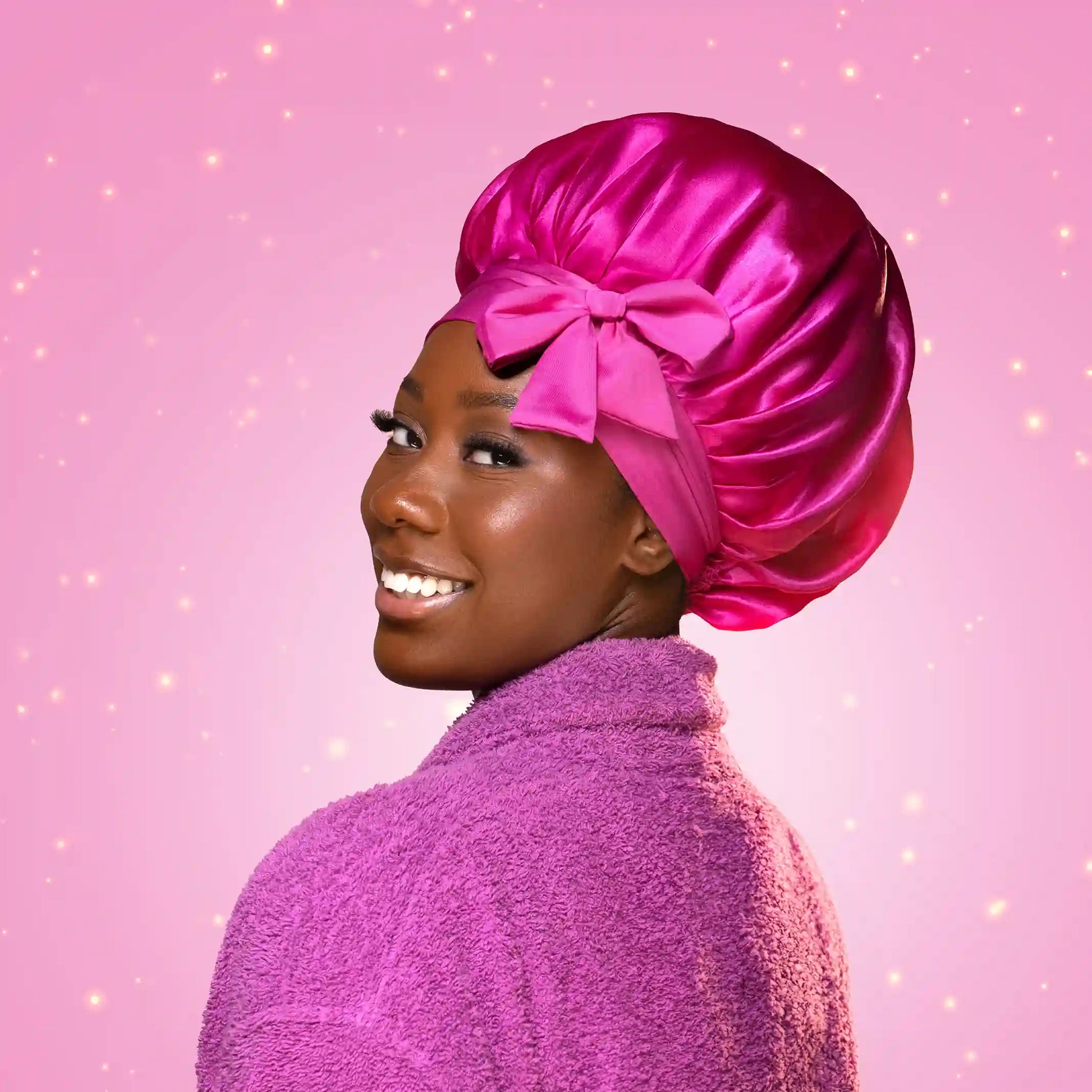 - Un bonnet en satin doux et respirant pour protéger vos cheveux durant la nuit, aider à réduire la casse et préserver l'hydratation.